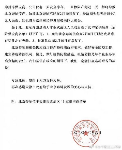 北京奔驰停产的话,每天将损失4个亿