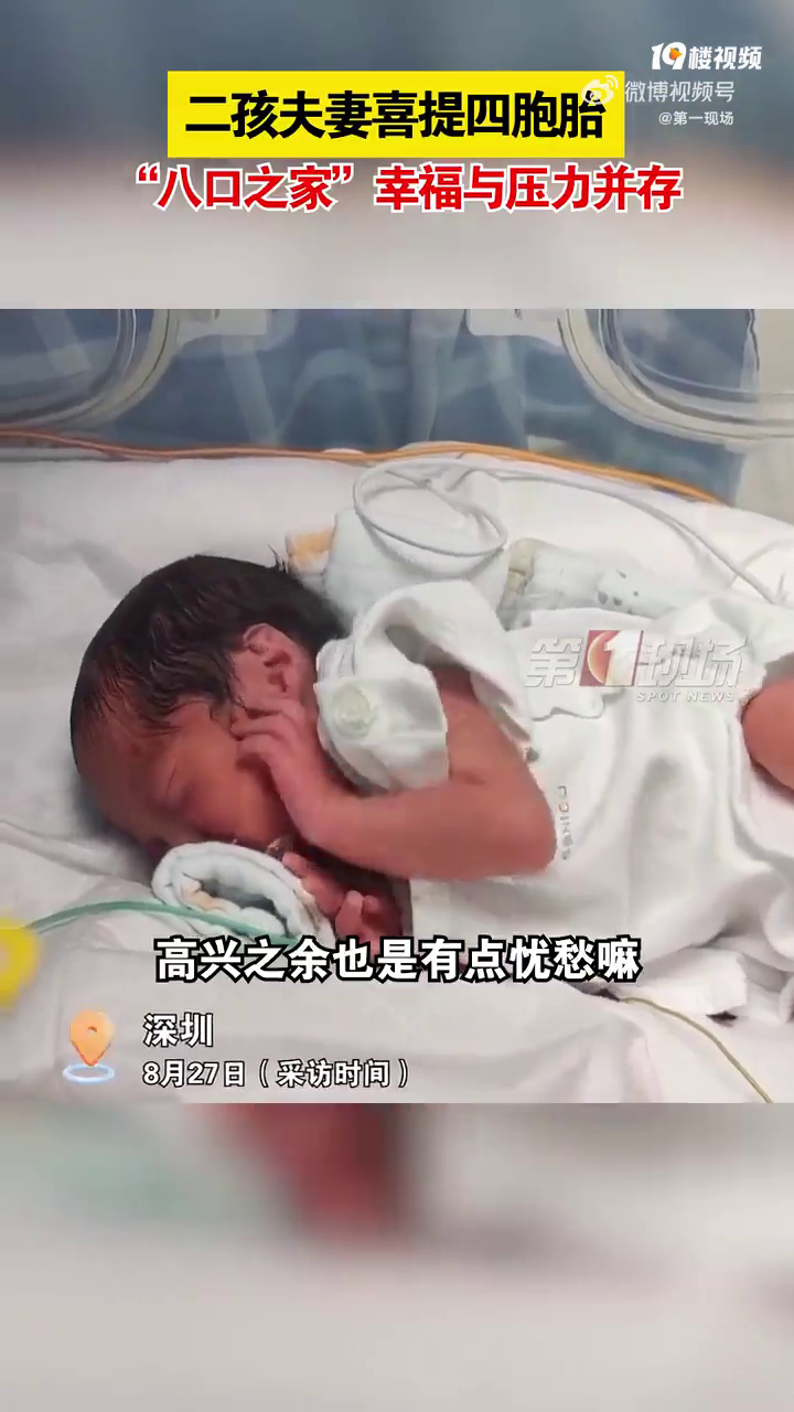 8月23号,广东深圳,已经有两个女儿的李女士,在医院成功诞下四胞胎,从原本温馨的四口之家,一下子扩容为热闹非凡的八口之家。随着四胞胎的到来,李女士夫妇是既开心,又感到压力山大!#产妇第三胎生下罕见4胞胎##深圳[超话]##广东[地点]#