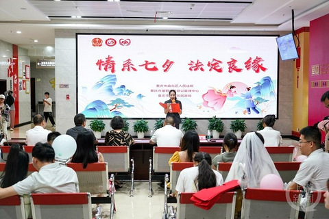 8月10日,七夕节,众多情侣办理了结婚登记,组建幸福小家,开启自己的婚姻生活。在祝福一对对新人拥有恩爱和谐的婚姻生活的同时,重庆市渝北区人民法院携手重庆市婚姻收养登记管理中心、渝北区民政局,在渝北区婚姻登记中心开展了一场以“情系七夕,‘法’定良缘”为主题的普法活动,为当天领证的新婚夫妇,送上一份特别的法治礼物。 转自上游新闻