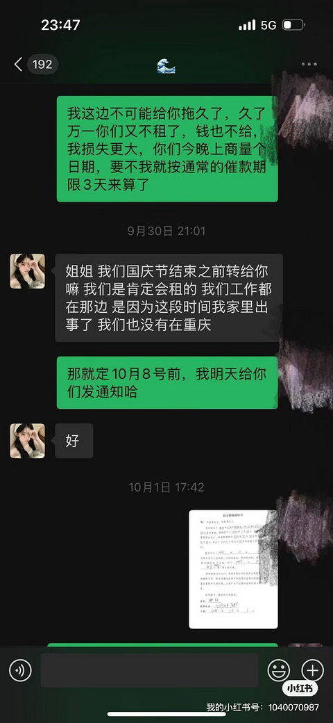 特别是江北区观音桥,鲤鱼池片区的放东们,避雷这两个04年的女的:[/11抠鼻]代某欣(微信号:I|**89,昵称:d**I)[/11石化]李某霓(微信号:Lik**28),来自四川珙县(劳资都没听说过还有这种县)[/11吓][/11吓]为啥子避雷也,总结几点1、月付,月付多半是没有存款,随时跑路的,月付就是让你这个月催了下个月催,下个月催了再下个月依旧催2、租房前最好看下工作单位,工作要稳定的才行