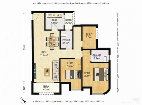 83w!买江北区,鸿恩寺,109平次新房3房双卫