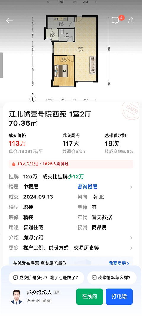 次新品质楼盘3个房间都都中庭业主亏本119.9万卖