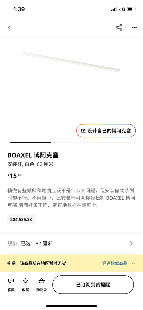 求购宜家博阿克赛的安装杆