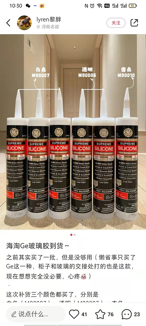 GE玻璃胶分了透明,白色,杏色大家知道只是颜色区别吗 其他功能上有没有什么区别准备6月装修,提前美国买好听说10年防发霉我看某宝基本上都是150-200左右