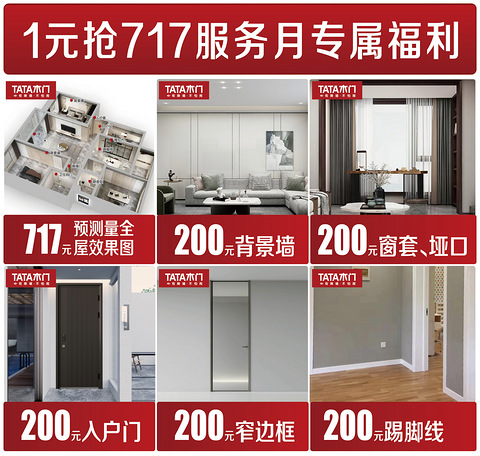 惊蛰TATA响,服务送春风。每年春暖花开之际,都是TATA木门一年一度的服务月,TATA木门将为全国新老客户进行上门焕新的服务。☆福利一:1元购717服务月大礼包 ☆福利二:新品上线,再送升级! ☆福利三:二十款热销门型,任你选 ☆福利四:进店好礼+订单好礼(购物狂报名客户) 23年,感恩相伴;2022年,依然无阻。TATA木门将继续给予产品最全面的保障服务,匠心回馈,福利满满!多年来,TATA