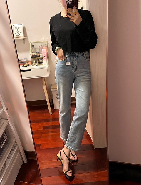 版型好的直筒牛仔裤,实在太加分了!裤子质感也不错