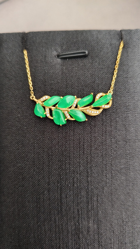 先来张镇楼图去腾冲怎能不逛翡翠市场淘到一手裸石,这叫“随行”,颜色很辣。最大的一颗,帮朋友淘的,做竹节戒指。设计图如上,正面、侧面。我比较偏爱不对称的款式。 之前想做锁骨链,树叶款,正好遇到这一手。在家里自己排列了下,7颗够了,如图设计图如下,背面、正面、侧面觉得右下角有点空,叶子略加宽,再加钻 这下顺眼多了 剩下2颗比较大的,给了朋友,帮她做天鹅吊坠,设计图如下定稿,开做,工期10天左右。 先来