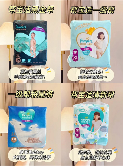 拉拉裤测评!二胎妈妈带你深扒帮宝适尿不湿从宝宝出生,我就是帮宝适的老粉,大牌尿不湿,用着也放心今天就以二胎妈妈的身份,给大家分享一下帮宝适4款热门的拉拉裤真实使用感受最后来个拉拉裤推荐总结,國让麻麻们在选购时知道哪款拉拉裤才更适合宝宝■帮宝适黑金帮:作为帮宝适的超高端系,整体测评下来除了贵没其它毛病!触感很柔软,可全包臀的裤型, 日用夜用都不怕漏,我比较喜欢给宝宝穿的一款!■帮宝适一级帮:爱动宝宝
