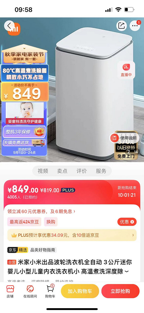 慢慢的要准备开始囤货了,被朋友种草了这款小米洗衣机。但是我妈说不用买,说娃儿的衣服两哈就手搓了。但是,我家是冬天出生的娃,衣服包被这些又不能和夏天出生的娃娃比,而且婴儿的衣服还是和家里人的衣服分开洗好一点,感觉有个洗衣机还是方便些。大家都准备囤婴儿洗衣机吗?来说说你们的看法? 我是被种草了这款小米的,京东价格到手819,比我之前看的海尔的便宜了接近1000,性价比还是挺高的。