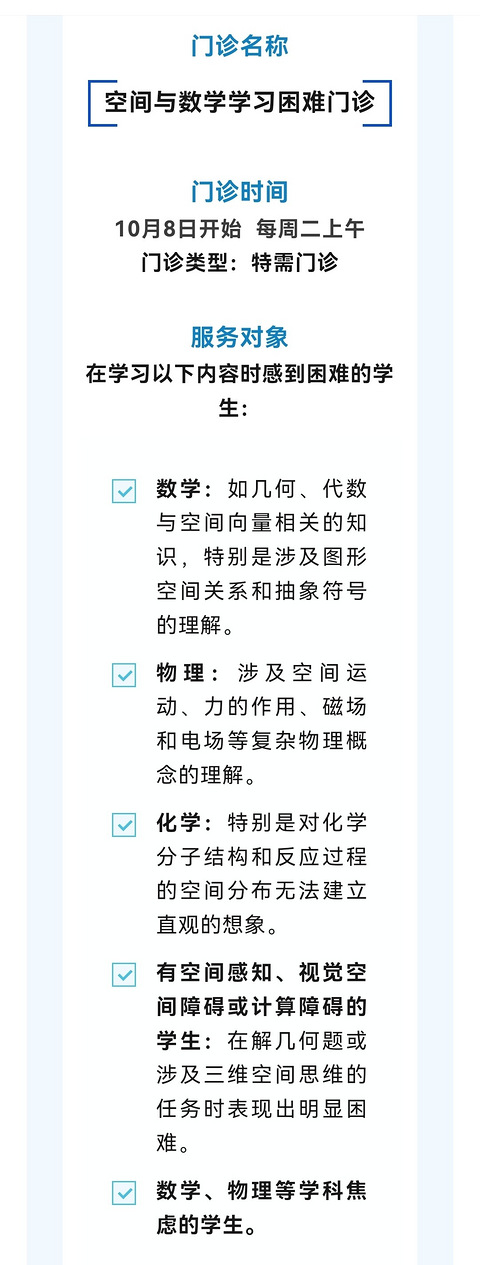 上海儿童医院发布通知开设空间与数学困难门诊针对数学、物理、化学、有空间障碍,焦虑的孩子提供帮助