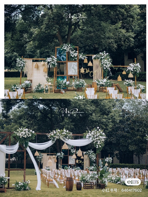 这是在小红书里面找的户外婚礼,但是想要一个场地。第一次参加户外婚礼,真的很有仪式感!第一次参加布置在室外的婚礼觉得很新奇,新娘真的很有仪式感,整个场景布置完,觉得很西式小清新,看到我恨不得立刻马上去结婚。绿色的草坪上摆着白色的椅子和气球还有花瓣点缀,超超超喜欢,羡慕。不过也要轮到我了!
