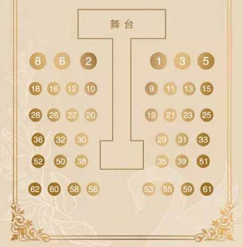 我的姐妹和好朋友们已经坐在比较靠后面了(38号桌和50号桌),但是一些看着我长大的叔叔阿姨就要坐在52桌了,我觉得不太好,我爸也觉得不太好 ,我爸就说把我的朋友安排坐50和52 ,让我把38让出来 ,因为比较靠近舞台