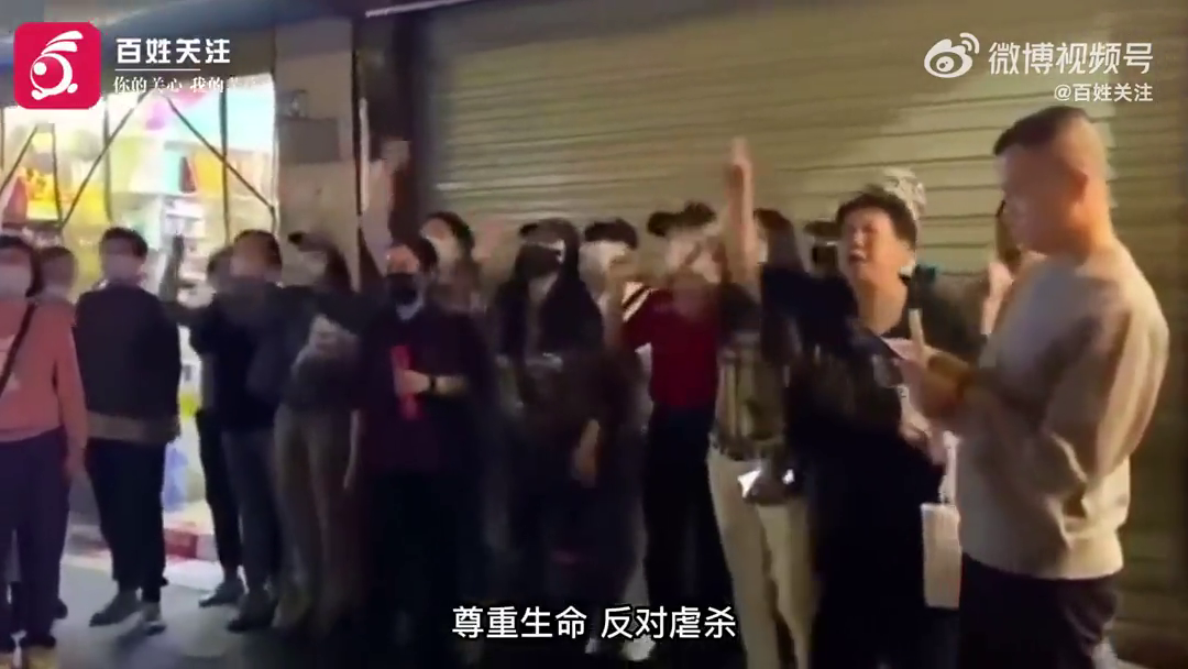 10月29日,湖北省武汉市江汉区“餐馆店员烫杀狗”事发后,有市民前往涉事门店表达抗议,要求“尊重生命”。记者从附近一名商户处获悉,涉事门店还被一些市民喷漆、撒冥币。该门店事发后处于关门状态,一直未营业。#店员疑烫杀狗遭群众上门送花圈##商店店员被曝当街用开水烫杀狗#