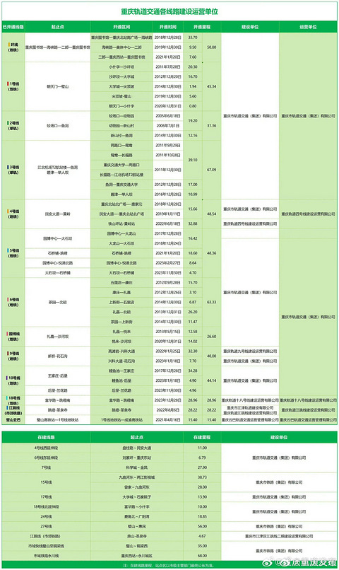 目前,重庆市轨道交通线路各建设、运营单位分别是哪些?戳图了解吧↓↓↓ ???