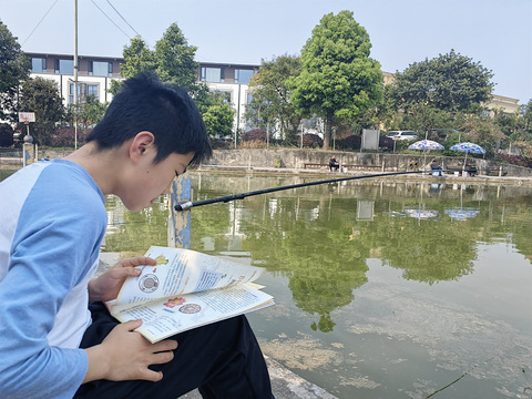 和钓鱼最配的居然是看书 今天被豪哥装到了,大家都下竿钓鱼,他却独自坐在旁边看书,就差草帽和蓑衣了。摘个橘子都心不甘情不愿的[闭嘴]第一次吹蒲公英的感觉到是不错[调皮]期末考完后,剧本杀约起来[勾引]