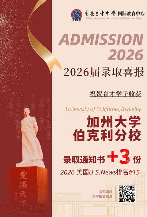 重庆育才中学高2026届国际课程班更新部分录取情况:美国方向新增▼