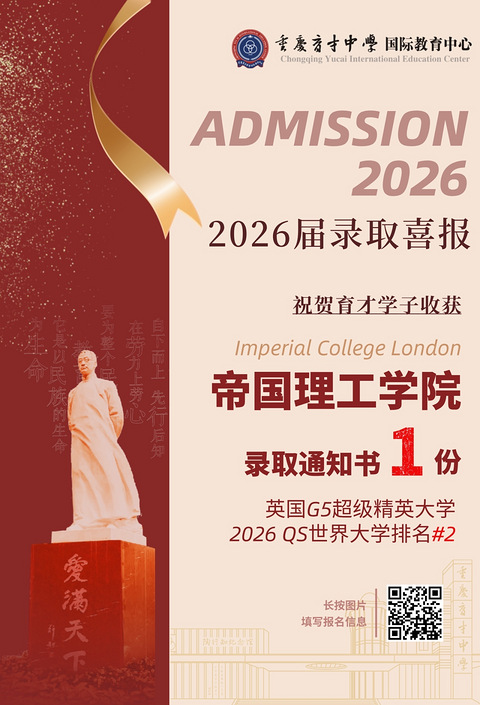 育才国际教育中心高2026届录取喜报截至目前,重庆育才中学高2026届国际课程班部分录取情况:英国与美国方向