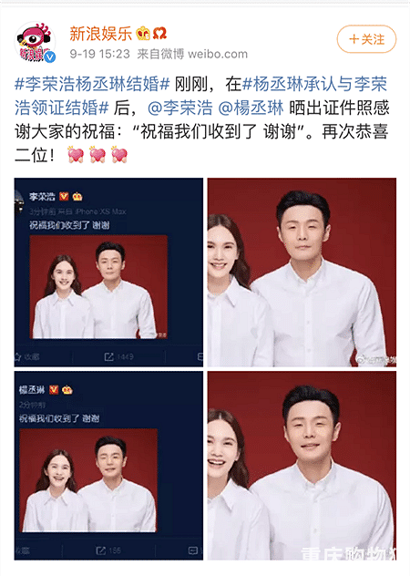 李荣浩杨丞琳结婚了,他们的登记照算不算近期明星当中最好看的?