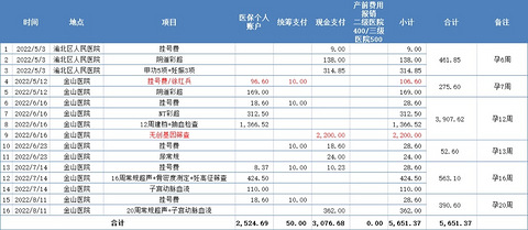 -五一发现怀孕,节假日金山医院做不了检查,当时孕6周。 -孕7周到金山医院,徐红兵医生的号,挂号费106.6元,只做了阴道彩超,胎心正常,告知下次产检12周。 -孕12周后,徐医生的号一次是没抢到,一次是被通知当天停诊,挂的陈露露医生。感觉如果本身没什么疑难杂症,陈医生即可,挂号费28.6元,也很耐心细致。因为年龄30+,做的无创plus,费用2200元,该项不能用医保卡。 -孕16-20周常规检