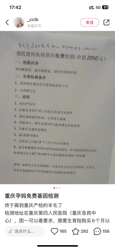 孕妈快来薅羊毛啦!重庆第四人民医院三大基因免费检测