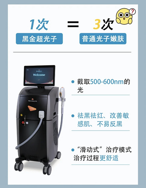 1次黑金超光子=3次普通光子嫩肤!!!我第一次尝试了效果非常惊喜!!而且只用了58块钱,哈哈哈