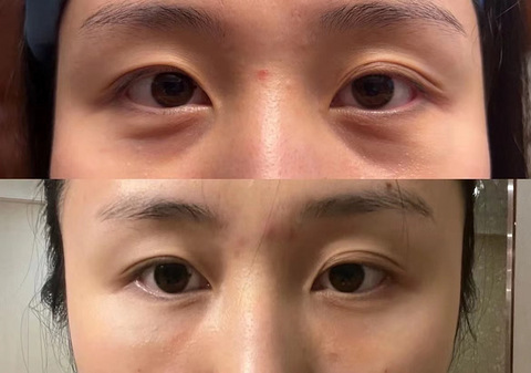 我做的是内切+眶隔释放 医生说有点内沟最好最眶隔释放比较好,不仅仅是去掉眼袋,眼下面平整才叫成功。目前第7天,还没完全恢复~之前眼袋还是多明显的
