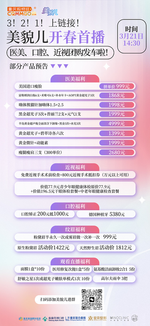 美貌儿开春首播,医美超低价,口腔近视免费名额,报名还有好礼送