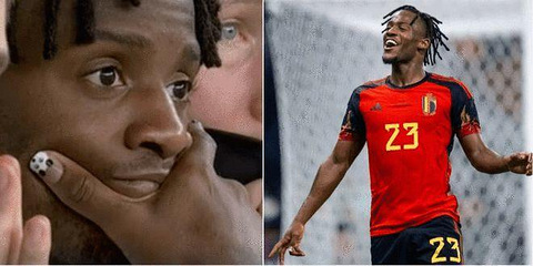 在卡塔尔世界杯F组第2轮小组赛中,比利时0比2负于摩洛哥比赛中,比利时前锋巴舒亚伊被替换下场后,电视镜头对准了他的手,手上的熊猫美甲吸引了球迷们的关注 转自红星新闻