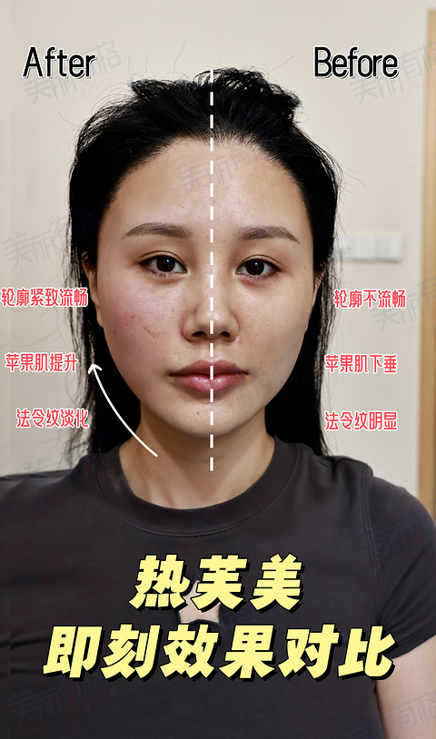 27岁的我想做点抗衰,但是我的皮肤特别娇气,用什么都难受,医生推荐我上热芙美,热芙美是射频抗衰仪器,前段时间获批了械三这点就很放心,加上有智能控温+过温保护技术。从源头规避风险,而且做的时候确实只有温热感,连我这种敏感肌都能承受,真的是超安心超舒适的体验。 关于效果:刚做完半张脸的时候,白大褂就给我看了一个左右的对比,即刻效果yyds苹果肌上提很明显,法令纹淡了,连眼尾感觉都有上扬,下颌缘也清晰