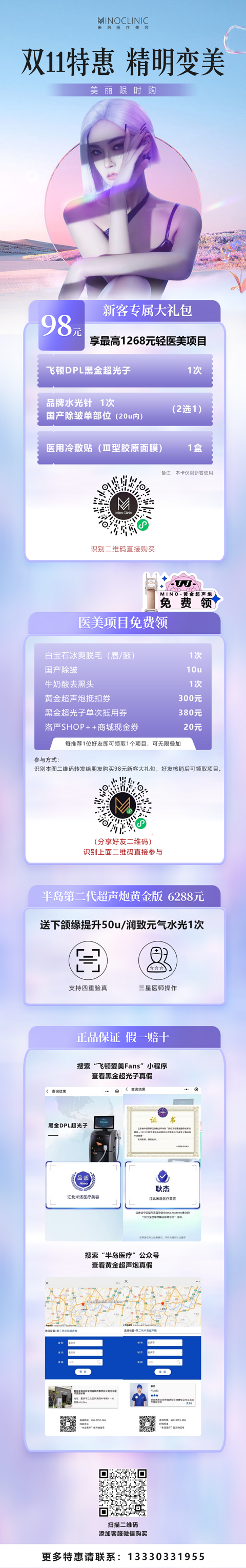 米洛双11来啦!分享好友免费得项目!98元购价值1268元变美大礼包