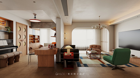 地址:嘉陵江天风格:中古包豪斯面积:141m? 以复古中古风为基底,用「色彩+曲线+质感」重构家的松弛感: