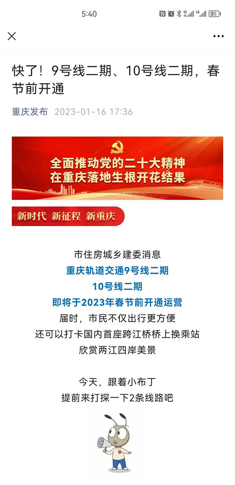 市住房城乡建委消息重庆轨道交通9号线二期10号线二期即将于2023年春节前开通运营
