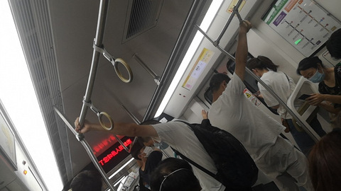 地铁的传送带压手