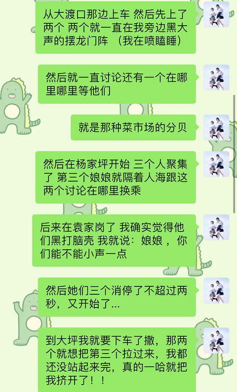 就刚刚...在2号线上临下车(在大坪换乘1号线)的适合和三个嬢嬢对战了。结局肯定是我完败...但是我就很想说出来讨论一下,遇见这种打混爬的嬢嬢该怎么办?