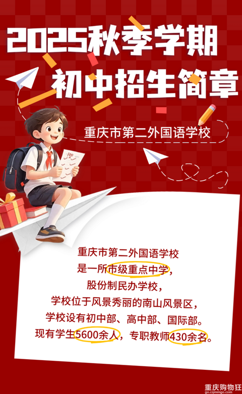 重庆第二外国语学校2023秋季学期初中招生,协议+摇号