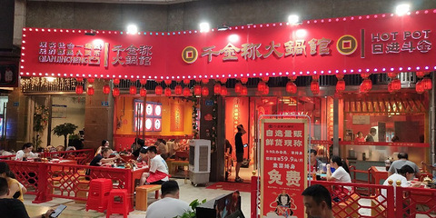 给孩子在万象城买鞋子,然后想吃火锅,拿出手机附近搜了一下说吃那个网红牛杂火锅,结果一到门口一看排了十几桌……果断放弃了,抬头一看对面有个万象美食街,就在谢家湾新小学正大门对面,看上去没有什么人,就说走过去看看,结果里面一条街巷子全是饭馆,本想随便找一家,结果走进去瞬间被一大片中国红吸引了。门口密密麻麻都是排队的人…… 整个店都是人,里里外外全是排队,结果小领导非要等,就说这家店好看,整个装修氛围