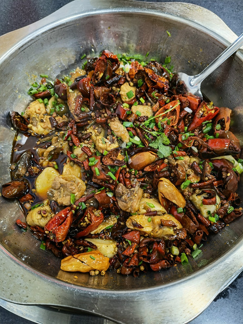 野椒鸡·天治宣(龙头寺总店)上次去吃是和媳妇儿去吃的点的二人餐都是两年前了,记得我当时还没吃够就没了。所以一直心心念的下次路过一定要在去吃,一转眼快两年了,正好今天骑车路过这已是中午饭点,对龙头寺路况不熟支支巷巷太多,于是打开导航一看只有500米,打开众评看见86抢购2人餐(记得上次是120几),于是马上团了个心想肯定吃的完[ej=1F604],进店点了个中辣并验了劵,只见来来往往的快递小哥进进出