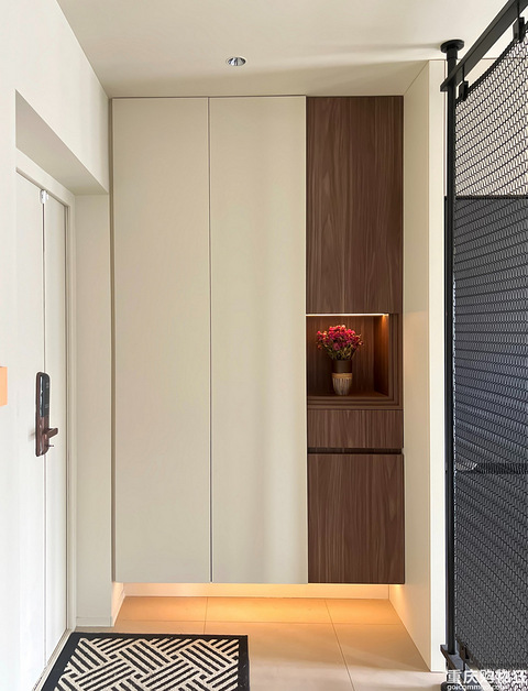 来自王甜甜超甜的分享 装修日记完整版:挑战30W穷装跃层中古混搭风,俗话说勤能节约钱 话说鞋柜位置当初在设计的时候,真的琢磨了好久因为电箱和空开的存在,导致收纳空间严重不足但是颜控的我,又不愿为收纳妥协,硬生生留出了开放格在鞋柜的外观和内部设计上,我动了这些小心思