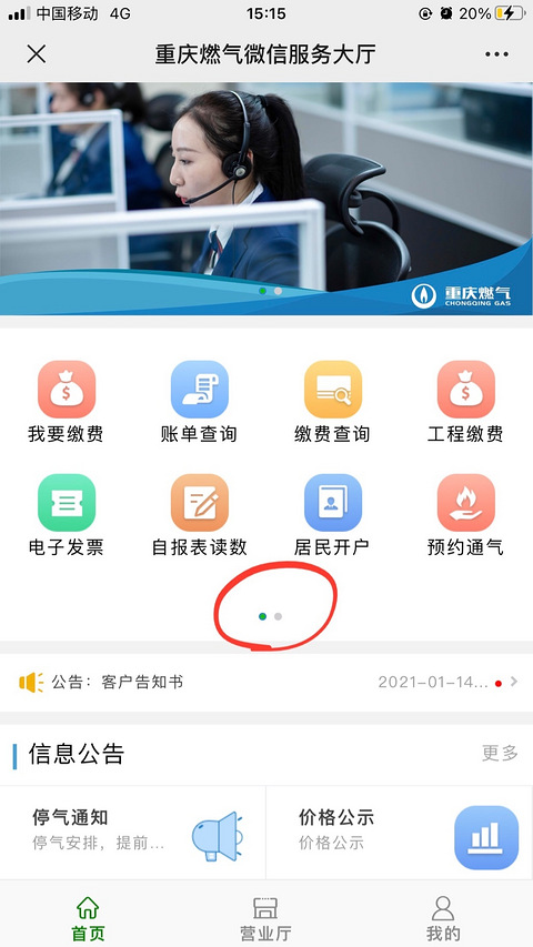 在11月的尾巴,把采暖用气申请了,没想到这么简单,直接在公众号申请就行了。第一步 打开重庆燃气公众号