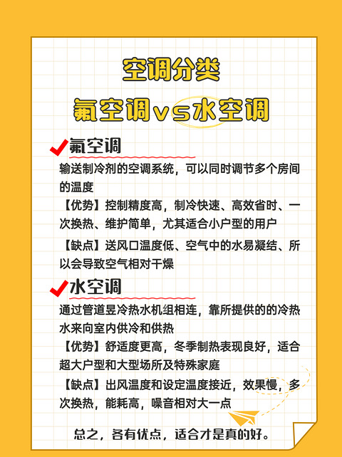 中央空调选购功课|配置篇 小白想装中央空调问得最多的就是,我需要装几匹的空调,但只要一问出来,商家就明白你是个小白,就等着被宰吧,今天就教你学会如何自配中央空调~ 【类型】常见的中央空调分为两类:氟空调和水空调 氟空调优势:制冷快,高效省时,一次换热,维护简单,更普遍。缺点:出风口温度较低,空气中的水易凝结,导致室内湿度下降,总而言之,干燥! 水空调优势:经过水换热后,更舒适、前期成本低、使用