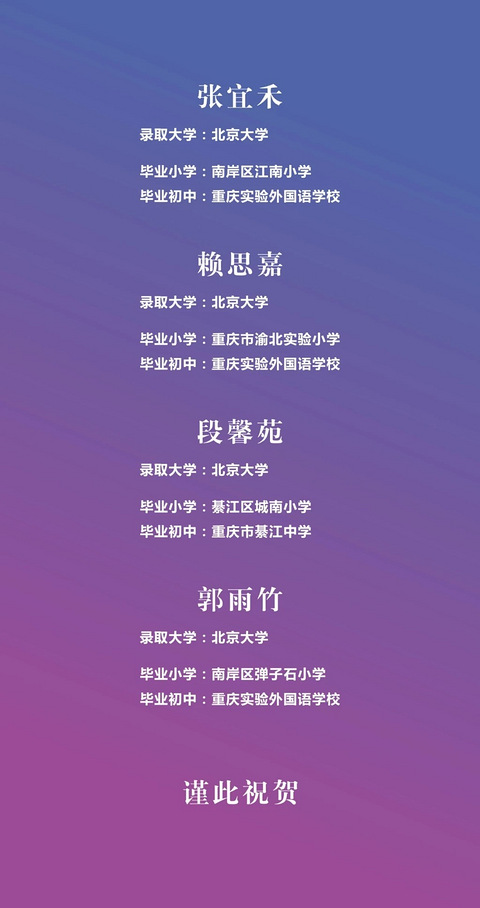 “我正在参加1月学校龙门阵,你也一起来吧https://go.cqmmgo.com/forum-462534-thread-47021609739669039-1-1.html” 一外升学喜报,4名学生保送北京大学!