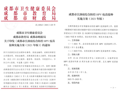 成都将为13-14岁在校女孩普遍接种HPV疫苗,补助计划出炉
