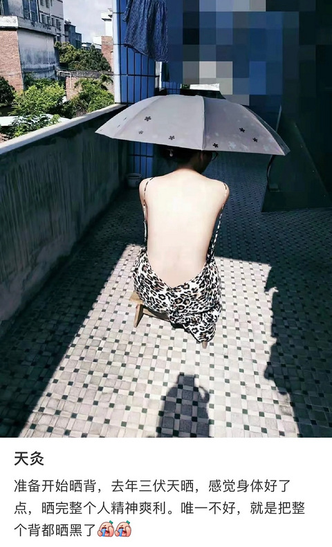 有人裸背晒太阳做“天灸”,这要是在重庆,整个背都要晒伤吧……