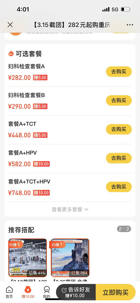 刷朋友圈的时候看到管管发的市妇幼的体检团购,上次就跟落了,这回马上团了。还顺便给妈妈和婆子妈一人团了一套,就当时女神节的特殊关爱了。 我团了之后第二天马上就去检查了,答应管管来发反馈帖的,拖到今天才有时间来发帖分享一下流程。检查流程很简单,而且很快,加上排队等候的时间算下来反正不到1个小时。 套餐有很多种可以选,根据自己的情况来看嘛。我买的套餐A+TCT+HPV,一共748元。