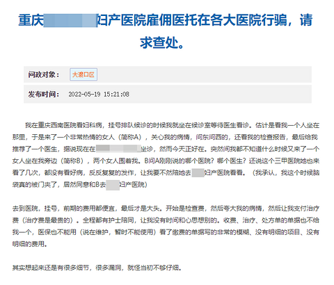 重庆某妇产医院雇佣医托在各大医院行骗,上当的不止一个两个