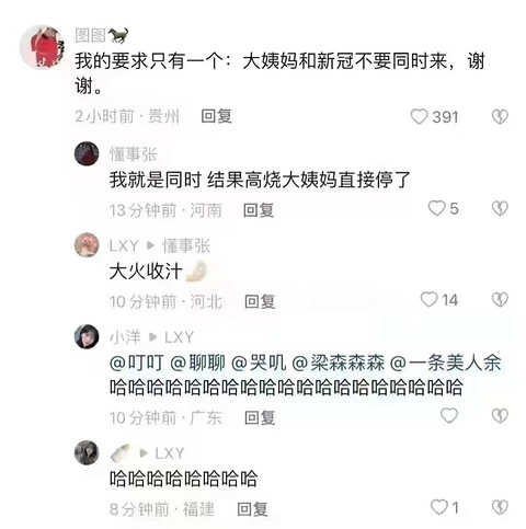 大姨妈和新冠千万不要同时来,有人高烧直接把大姨妈烧停了