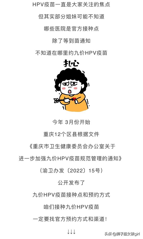 官宣!重庆12个区/县公布九价HPV疫苗接种单位及预约方式直接看图片哈!