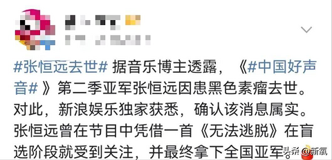 每次看到这样的热搜都会很心痛。《中国好声音》凭一首《无法逃脱》在技惊四座,最终拿下亚军的歌手张恒远因病去世,年仅37岁。 新氧
