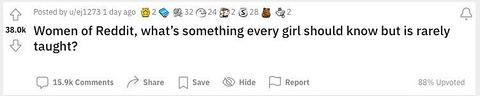 英国那些事儿 在成长过程中,无论是从老师、家长还是同学身上,我们都学习过很多知识, 但长大成人后,生活里还是有着许多盲区,每一天都要面对新的挑战,有时还会因为缺少相关经验和知识走了许多弯路。 如果有人能够事先做出提醒,那我们的生活一定会变得轻松一些.... 最近,Askreddit上一个帖子就引起了大家的热烈讨论: “Reddit的女性网友们,有哪些是每个女孩都应该知道,但是没有人来教的事?” 其