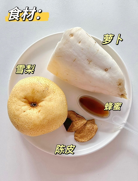 咳嗽的集美们看过来,快试试这个土方子。 食材:萝卜、雪梨、陈皮、蜂蜜